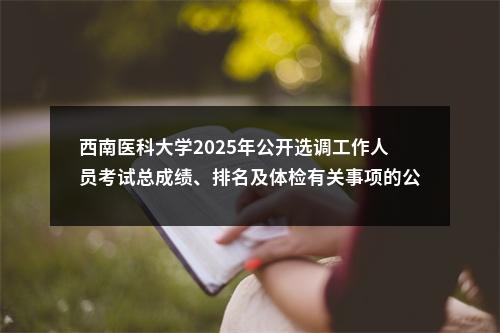 在线咨询 根据《西南医科大学2025年公开选调工作人员公告》规定,现将参加面试人员的考试总成绩、排名及体检有关事项公告如下: