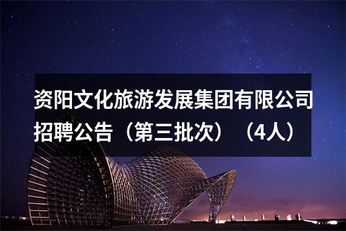 原标题:资阳文化旅游发展集团有限公司 招聘公告(第三批次)