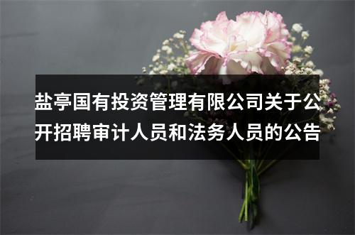 原标题:盐亭国有投资管理有限公司关于公开招聘审计人员和法务人员的公告