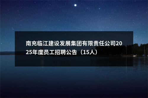按照《中共南充市国有资产监督管理委员会委员会关于市临江建设集团2025年度员工招聘计划备案的批复》,年度计划招聘总人数16人,本次招聘15人,公告如下: