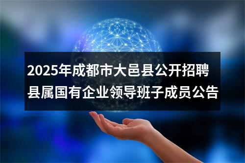 原标题:2025年成都市大邑县公开招聘县属国有企业领导班子成员公告