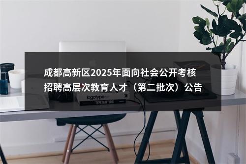 面向全国公开考核招聘符合本次公告招聘岗位条件的高层次教育人才。招聘岗位、名额详见《成都高新区2025年面向社会公开考核招聘高层次教育人才(第二批次)岗位一览表》(附件1,以下简称《岗位一览表》),除已明确学校和职务的岗位外,其他岗位及工作单位由成都高新区教育体育局根据办学需求统筹安排。