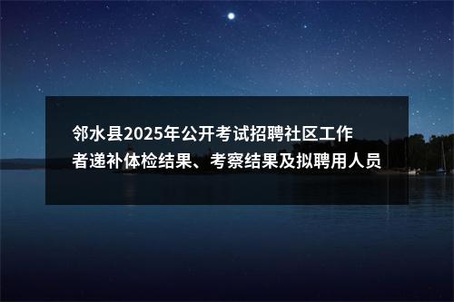 原标题:关于邻水县2025年公开考试招聘社区工作者递补体检结果、考察结果及拟聘用人员 (第二批)的公示