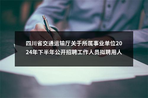 原标题:四川省交通运输厅关于所属事业单位2024年下半年公开招聘工作人员拟聘用人员的公示(第四批)