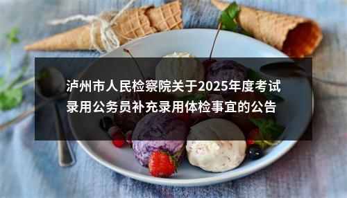 原标题:泸州市人民检察院关于2025年度考试录用公务员补充录用体检事宜的公告
