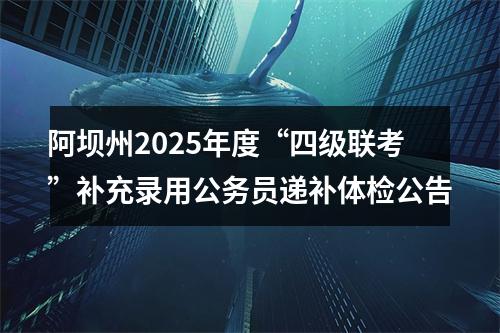 声明:专注 阿坝州2025年度“四级联考”补充录用公务员递补体检公告 相关岗位分析;专业指导面试技巧;保障就业成功概率。