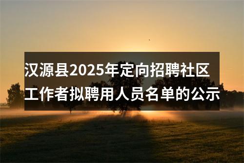 原标题:汉源县2025年定向招聘社区工作者拟聘用人员名单的公示