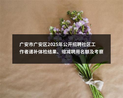 原标题:中共广安市广安区委社会工作部 关于广安市广安区2025年公开招聘社区工作者递补体检结果、缩减聘用名额及考察的公告